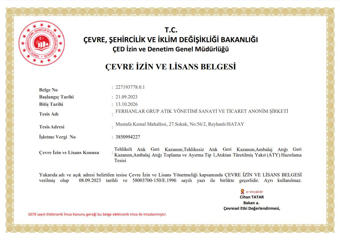 FERHANLAR GRUP , gelişmiş modern ülkelerde olduğu gibi, ülkemizin de ekolojik dengesini ön planda tutarak gerek insanlarımızın layık oldukları temiz ve düzenli bir çevrede yaşayabilmelerine imkan tanıyan ve gerekse de, şimdiye kadar değerlendirilmeyip heba edilmiş olan her türlü sanayi ve kentsel atıkların birer değerli hammadde olarak ait oldukları sanayilere geri dönüşümlerini sağlamak ve bu sayede milli ekonomimize hesapta olmayan yeni ve büyük gelirler sağlamak amacıyla Avrupa’nın her biri kendi alanında lider birer kuruluş olan firmaları ile el ele vererek çevremizin ıslahı ve ekonomimizin refahı için çalışmalar yapmak amacıyla çalışmalar yapmaktadır.